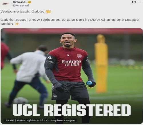 阿森纳确认道曼受伤,热苏斯加入欧冠A名单!枪手或轮换部分主力